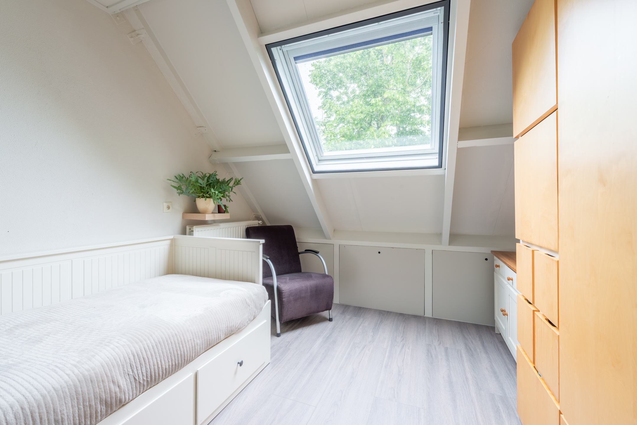 Slaapkamer met grote dakkapel en vierde slaapkamer met dakraam.