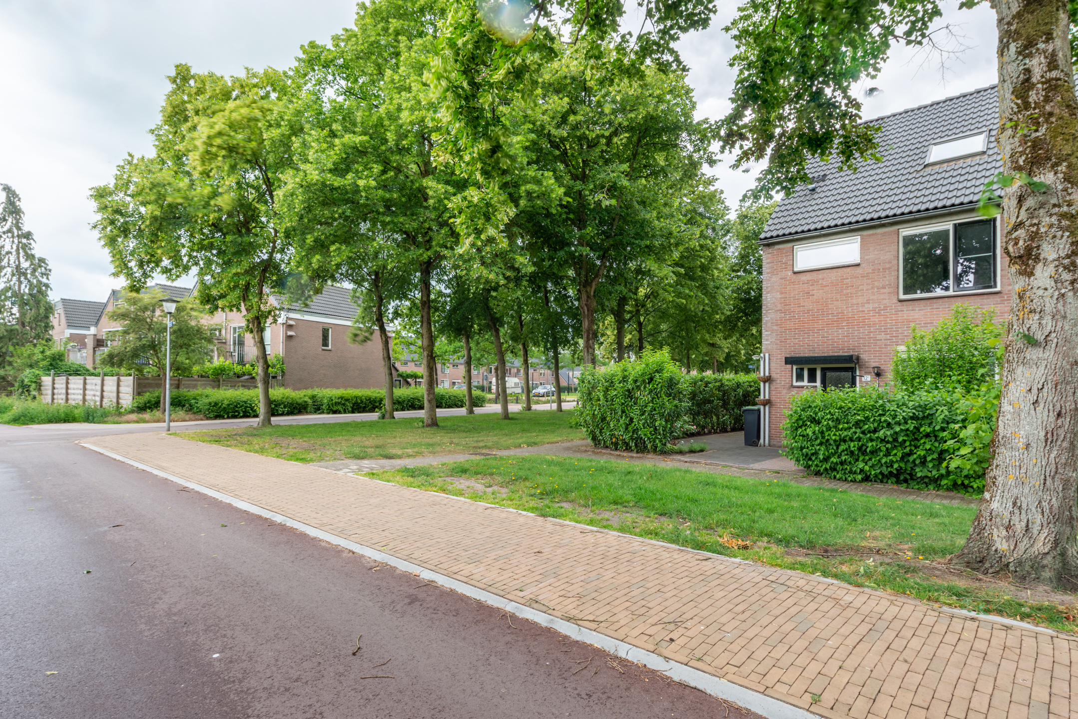 Aan rustige weg, in woonwijk, open ligging