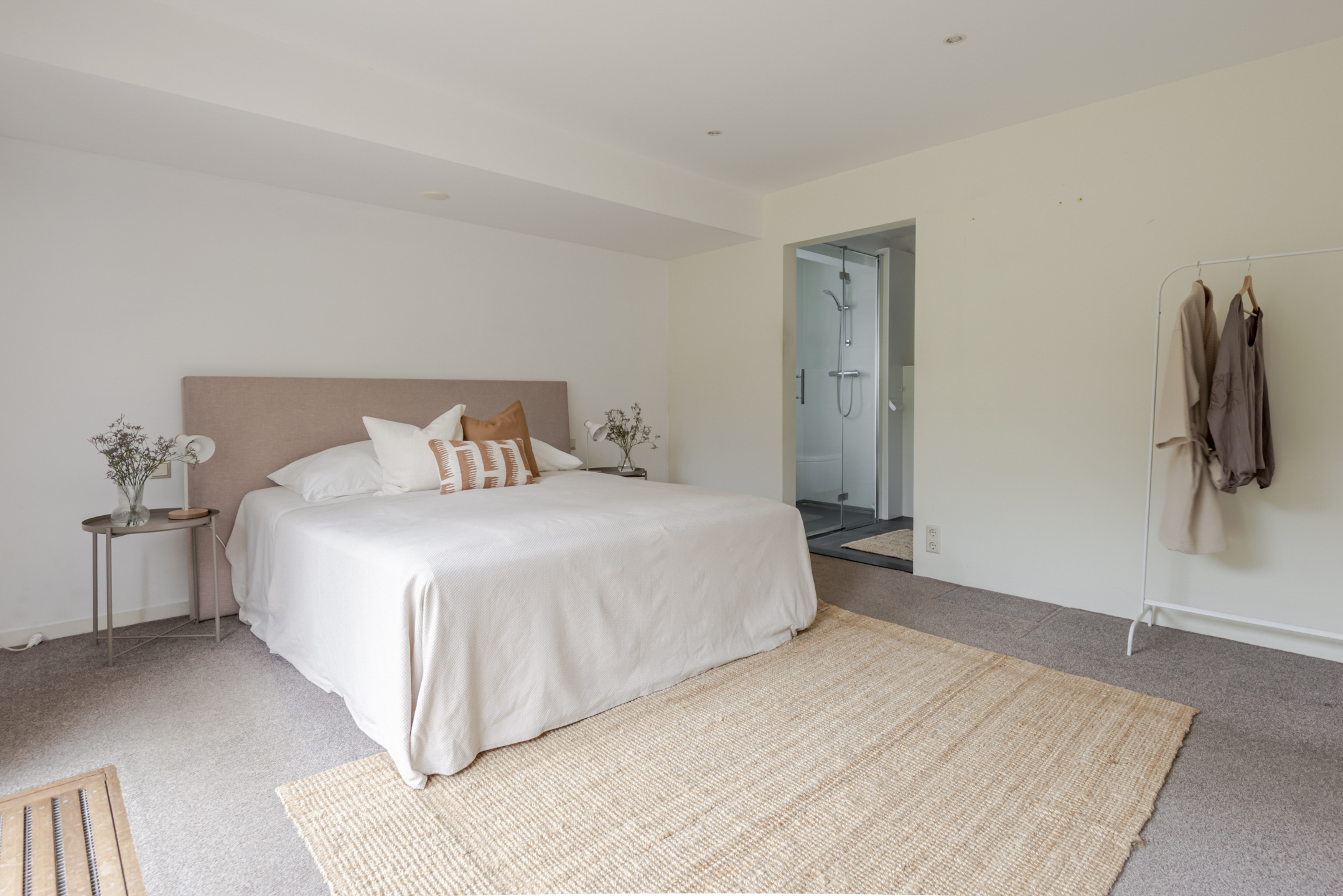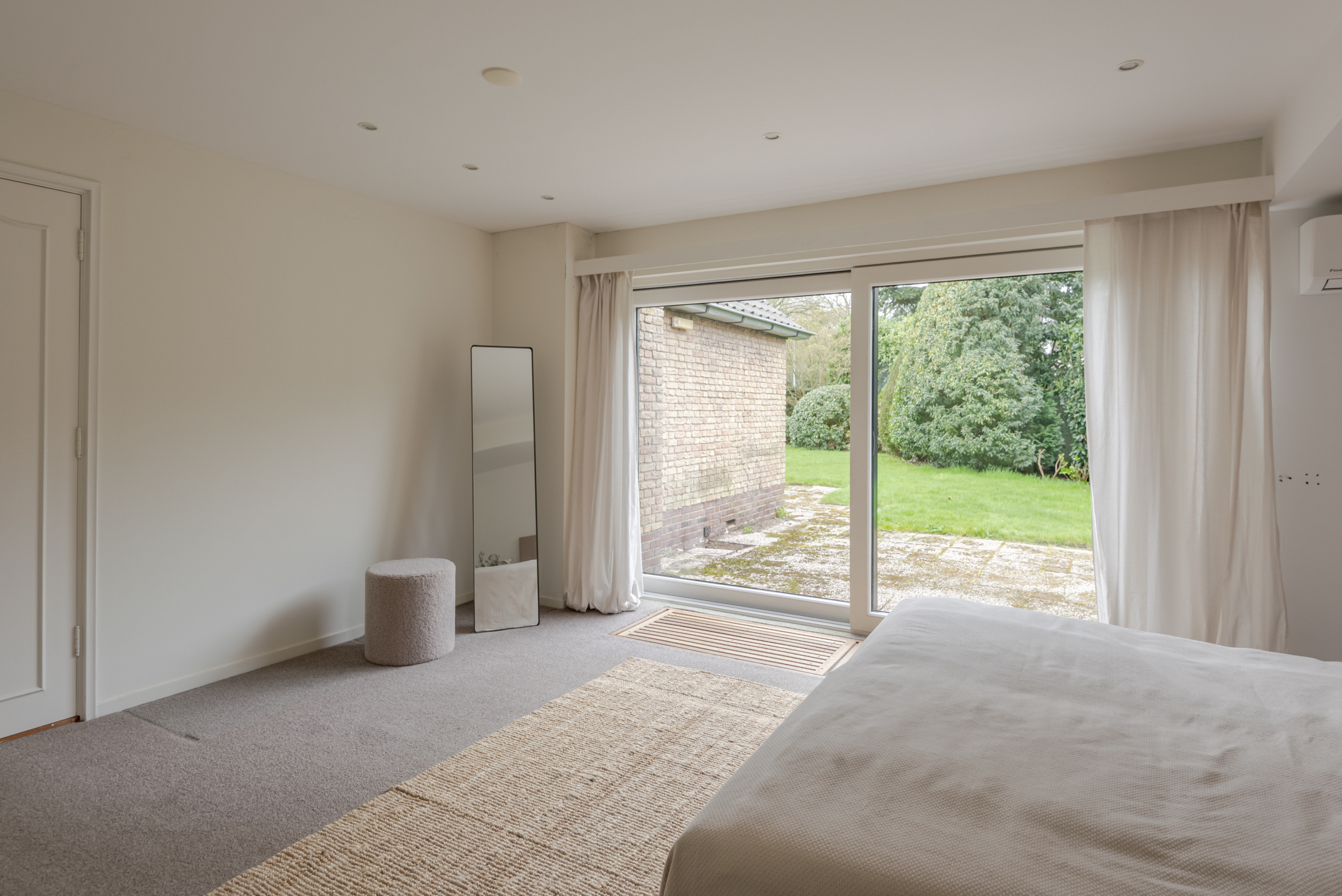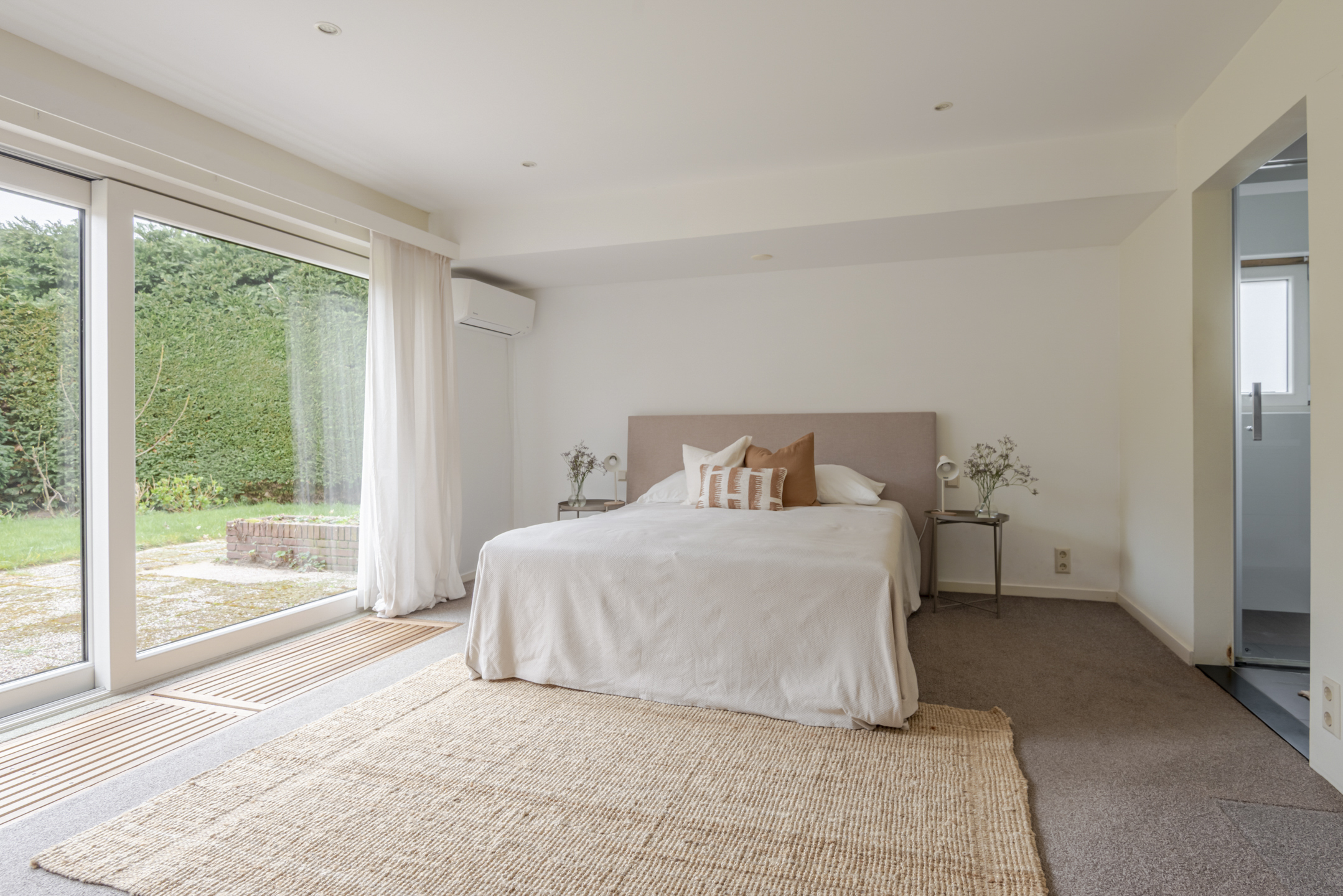 - Masterbedroom met aangrenzend de badkamer en schuifpui naar de tuin