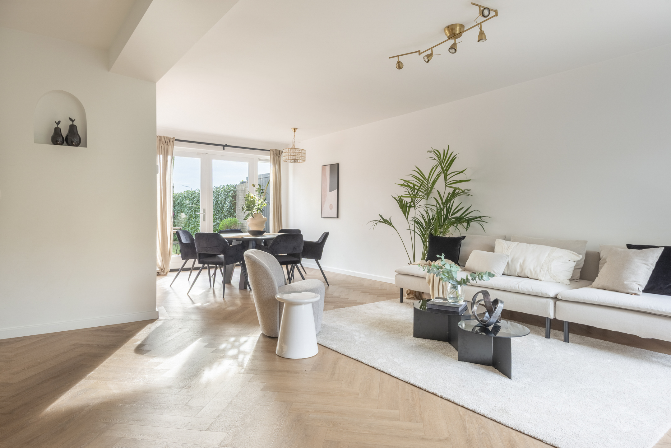 - Woonkamer met toegang naar de zonnige tuin.
