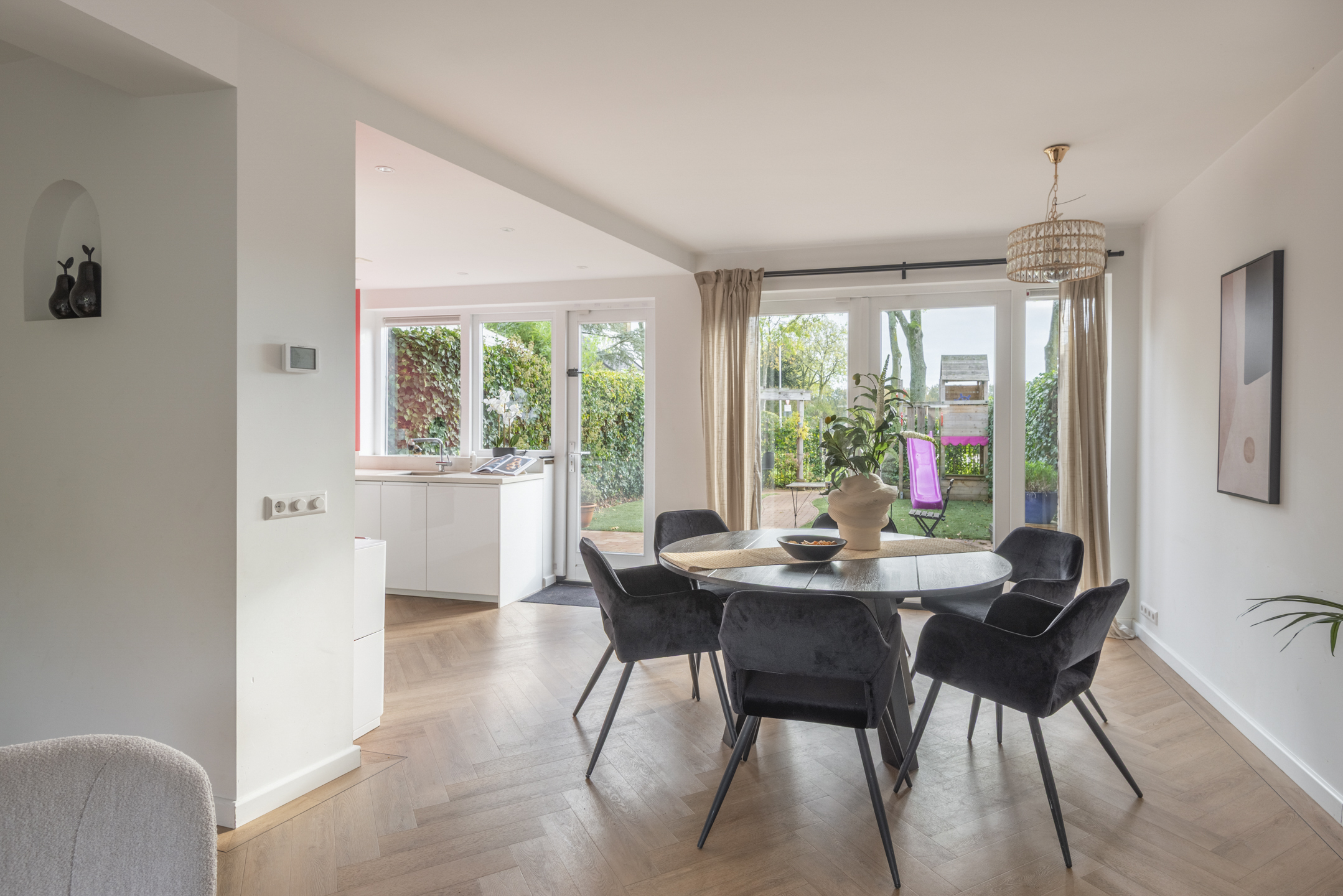- Begane grond voorzien van vloerverwarming en PVC visgraat vloer.