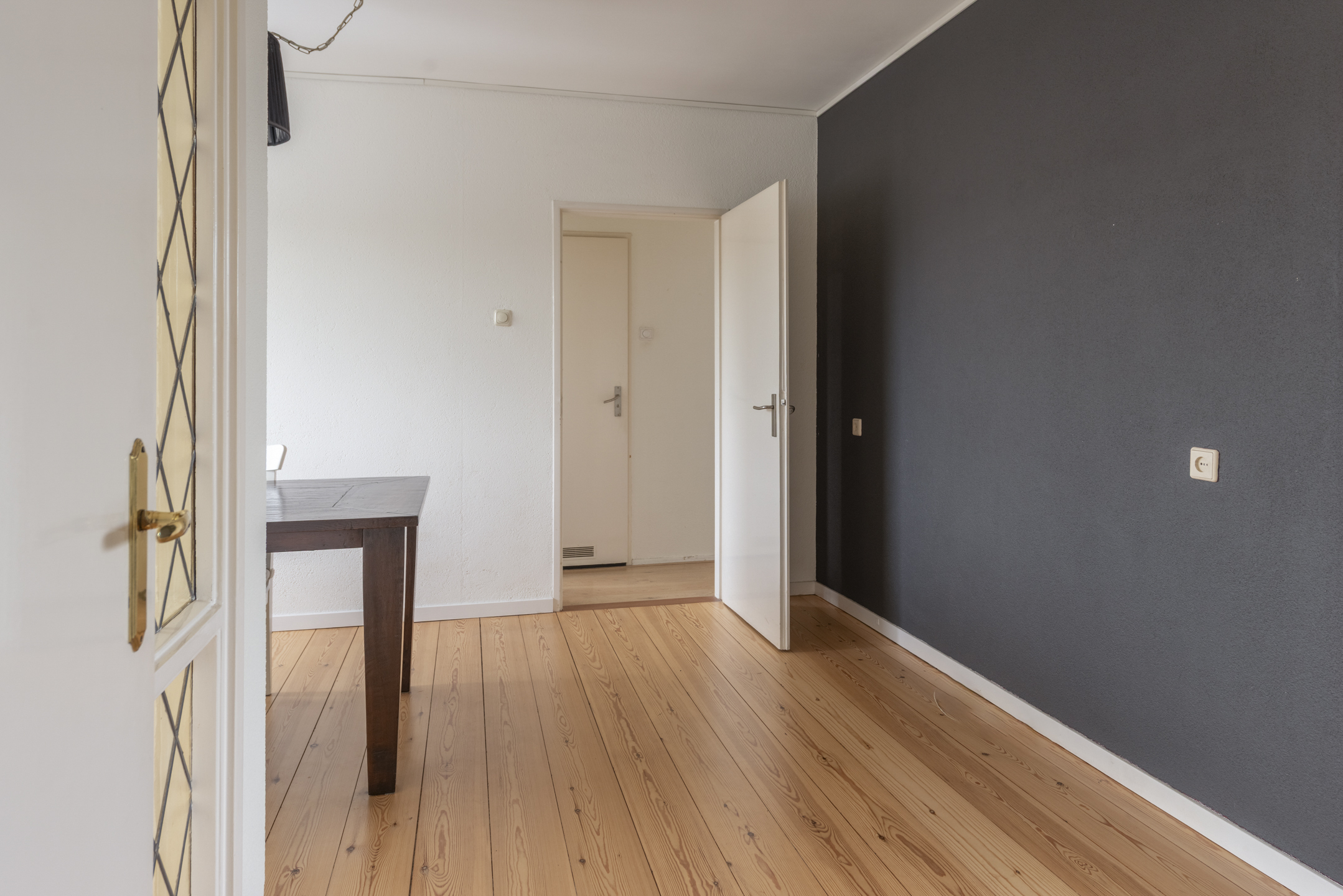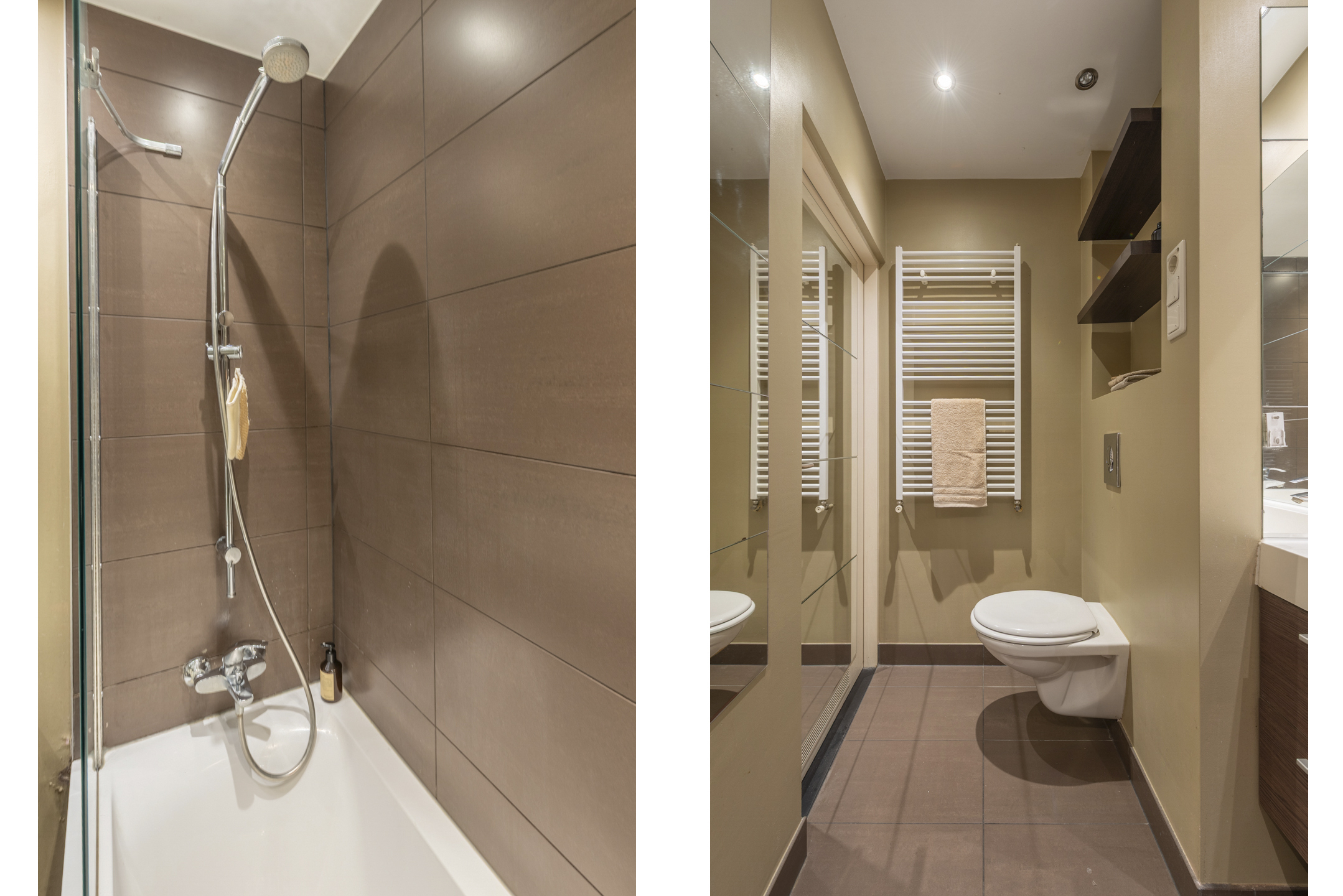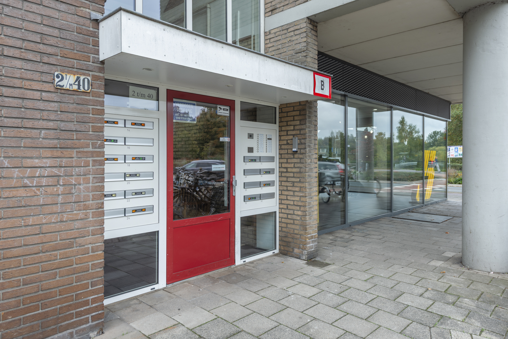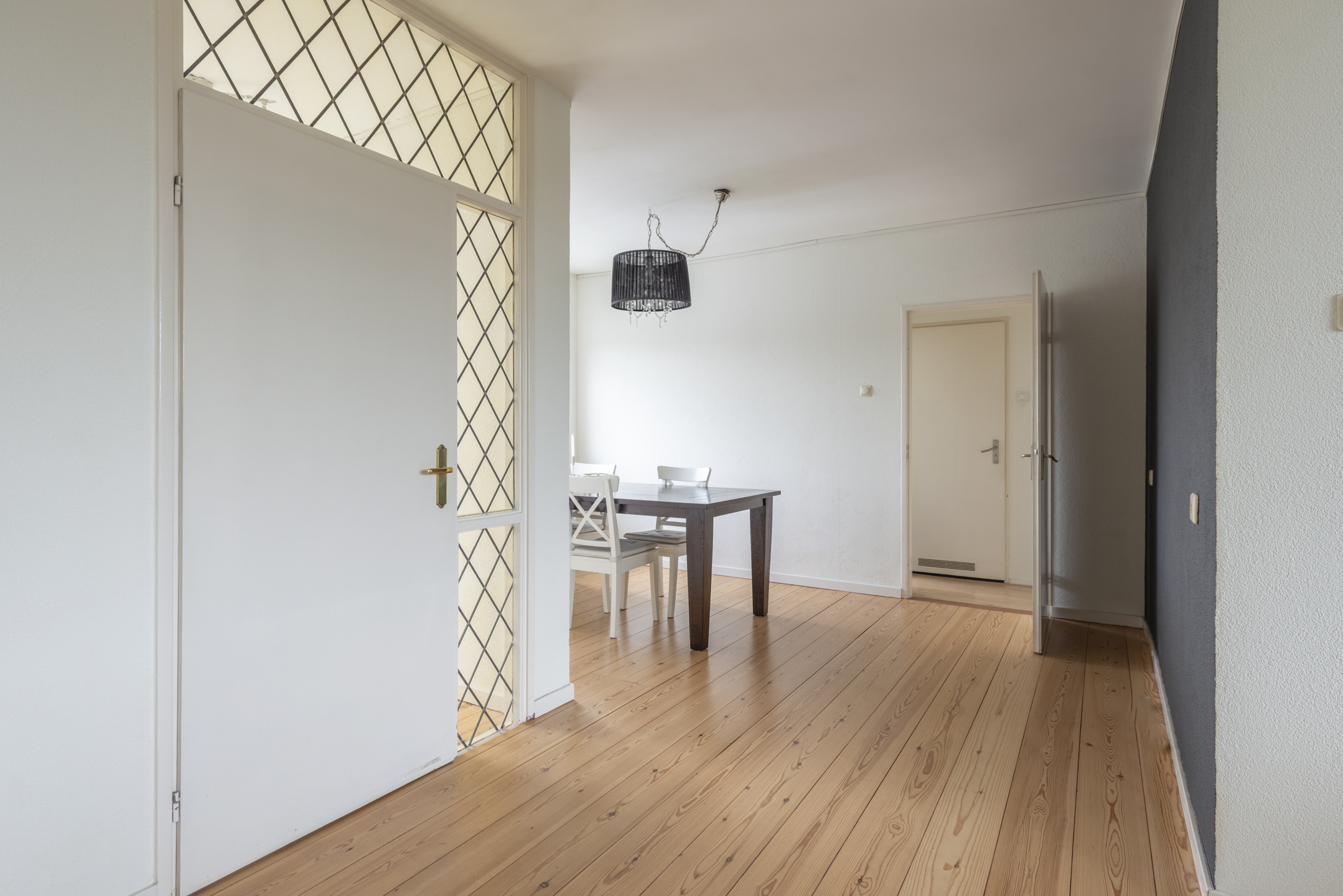 Dit ruime appartement ligt op het einde van de galerij op de vierde verdieping. Daardoor is het een heel lichte en ook een heel rustige plek. Vanuit de woonkamer en balkon kijk je uit over het groen van het Mouwtje en de boomtoppen van Bussum en Naarden, terwijl onder je de reuring van het centrum aan je voorbij trekt. Op de galerij kun je rustig op een bankje van de zon genieten.
